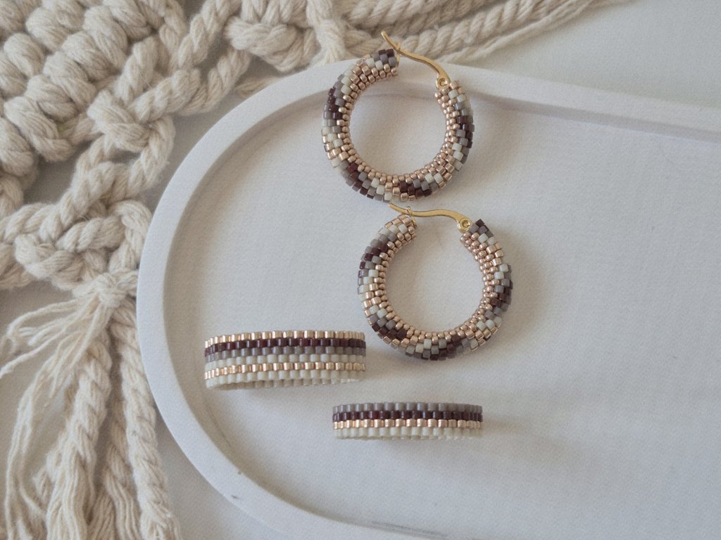 Kruhové náušnice vyrobené náročnou technikou z kvalitních japonských korálků Miyuki.
