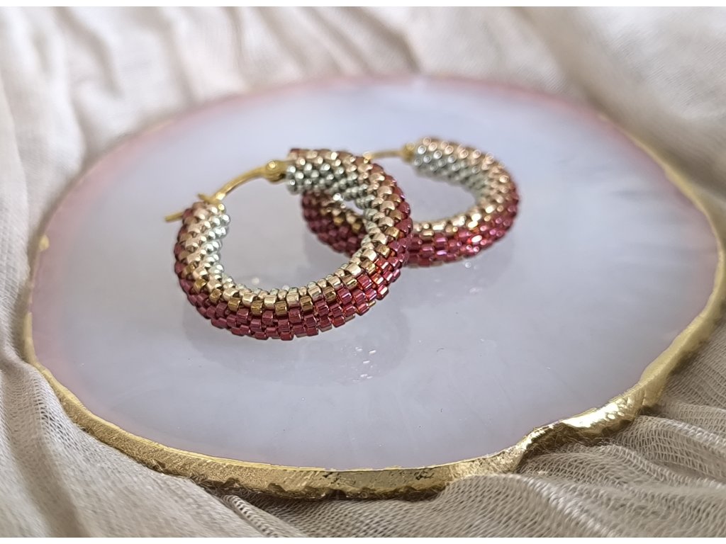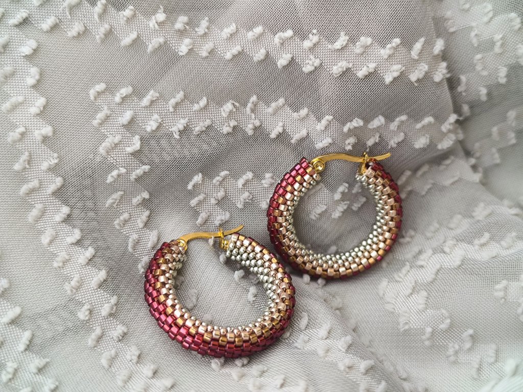 Krásné kruhové náušnice vyrobené náročnou technikou z japonských korálků Miyuki.