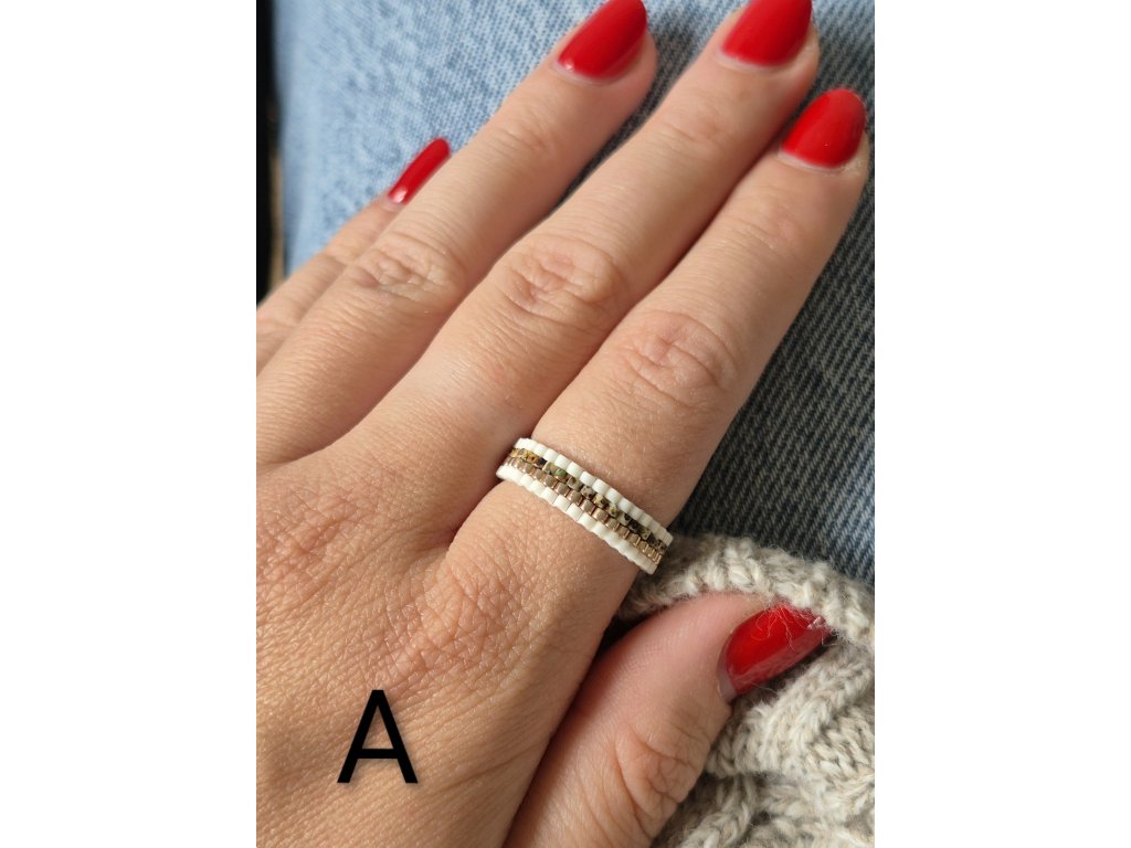 Prsten je ušitý z kvalitních japonských korálků Miyuki náročnou technikou. Šířka prstenu je cca 9 mm.