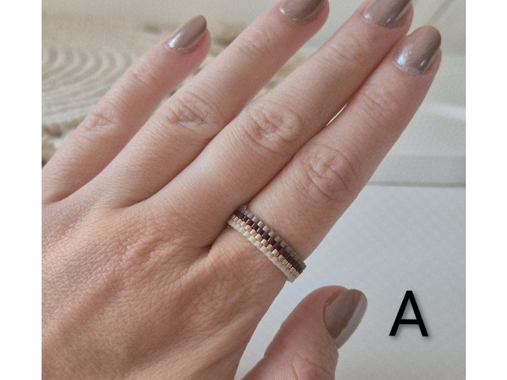 Prsten je ušitý z kvalitních japonských korálků Miyuki náročnou technikou. Šířka prstenu je cca 9 mm.